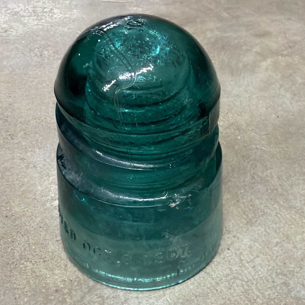 Option Green~ beautiful antique aqua/blue-green glass electrical insulator with “patented 1907” marking. Approx early 1900 piece.