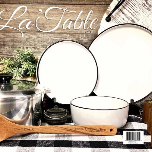 Option 2 WHITE W/BLACK TRIM DINING SET – PLATE, SAUCER, BOWLS – 12PC SET