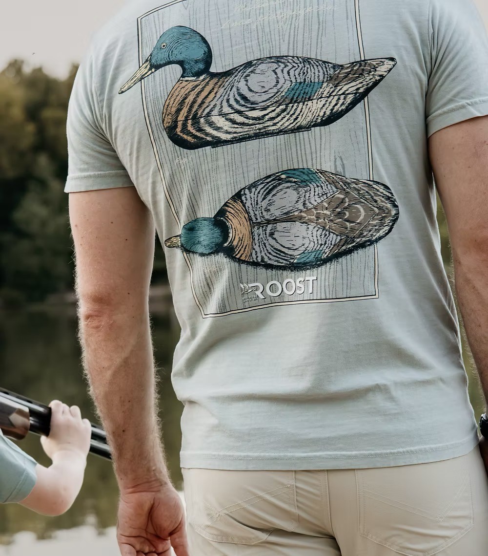 Roost Waterfowl signature T-shirts will be the softest shirt in your closet. Each shirt goes through a unique garment wash process for a "worn in" look and feel. Our custom graphics are designed to be unique and are perfect for a day at the farm, a day on the beach and for everything else life throws our way.
